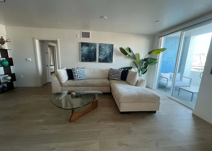 Situated around a 20-minute walk from the Abbot Kinney Boulevard Shopping, Marina View Two-Bedroom With Pool And Balcony Los Angeles apartment provides guests with Wi-Fi for either business or leisure.